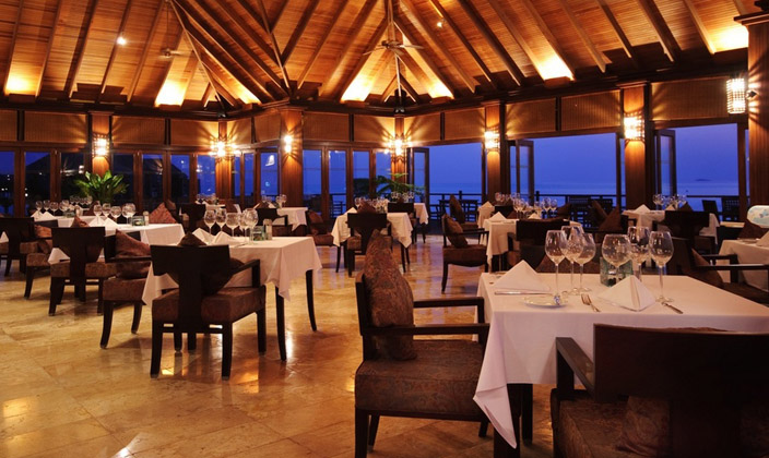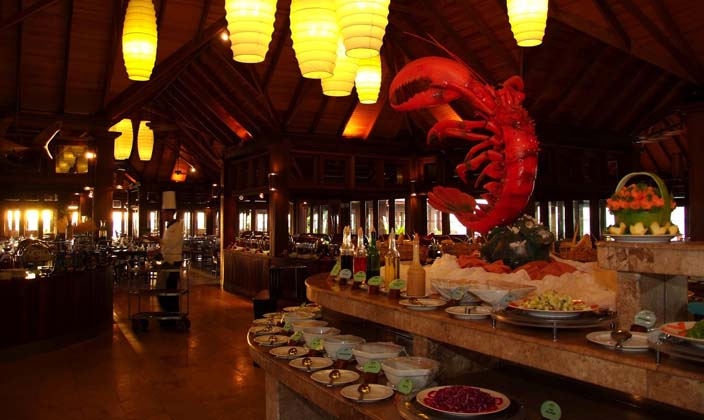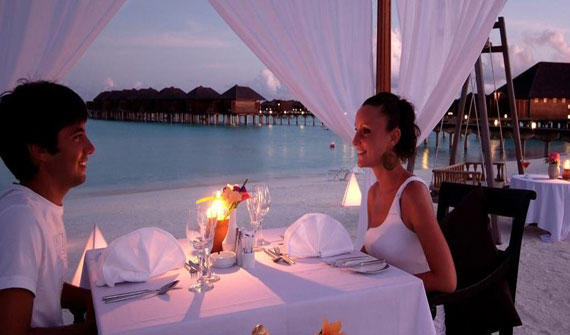 美食特色:國(guo)際(ji)美食。日(ri)落餐廳完全坐(zuò)落在(zai)水之(zhi)上,昰(shi)雙魚島的(de)主(zhu)餐廳,提供一(yi)日(ri)三餐,各國(guo)口味菜肴定能(néng)滿足您的(de)胃。有(yǒu)意大(da)利菜,中(zhong)國(guo)菜,東南(nan)亞菜,地中(zhong)海菜,在(zai)露天的(de)大(da)甲闆上,讓蜜月新(xin)人(ren)度過(guo)難忘的(de)時刻,帶來愉悅的(de)心情。